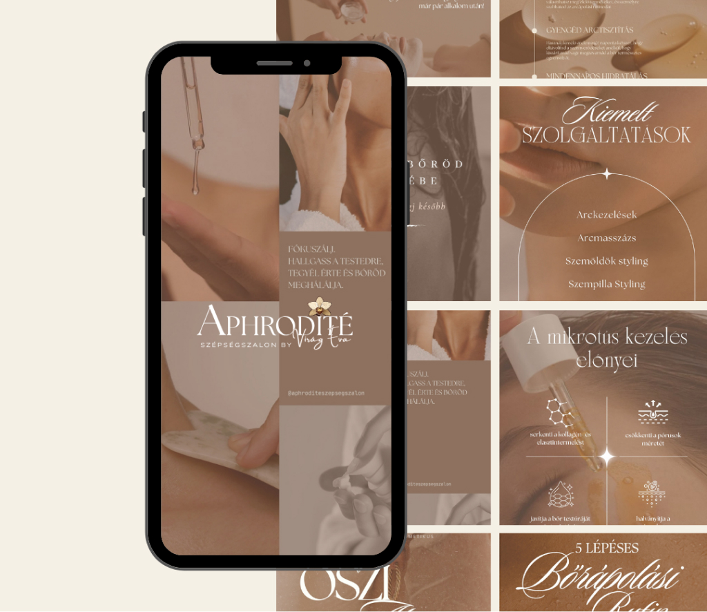 Tudatosan felépített, egységes és vizuálisan is megkapó közösségi média jelenlétet hozok létre – olyan arculattal, amely valóban tükrözi a márkád értékeit. Legyen szó egy induló profilmárkáról vagy egy frissítésre szoruló feedről, segítek abban, hogy az üzeneted vizuálisan is átütő legyen. Minden csomagom célja, hogy egy jól felismerhető, stílusos és hiteles megjelenést alakítsunk ki, amely támogatja az üzleti céljaidat.